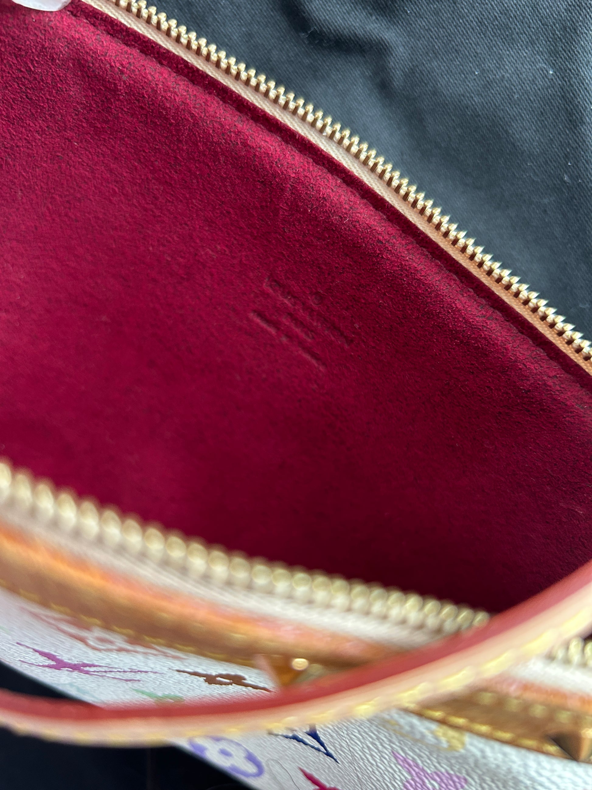 A rare early-2000s Louis Vuitton x Murakami Multicolore Pochette in white—an iconic vintage collectible that adds playful elegance to any outfit.