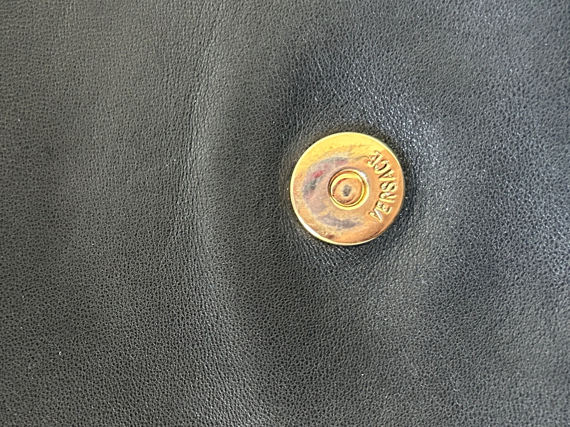 A striking vintage Versace shoulder bag featuring the iconic Medusa emblem and oversized gold chain—an instantly recognizable statement piece, offered at an accessible price due to light corner wear.